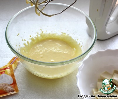Отделить желток от белка. Белок взбить с половиной сахара до пиков