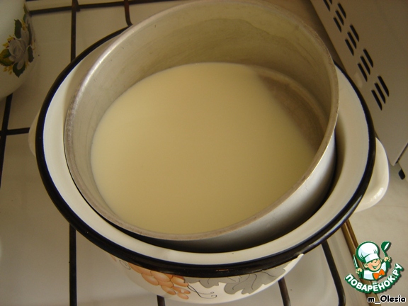 Поставить молоко с ванилином на водяную баню на 10 минут.