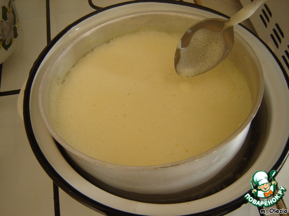 Выдержать полученную смесь на горячей водяной бане до исчезновения пены.