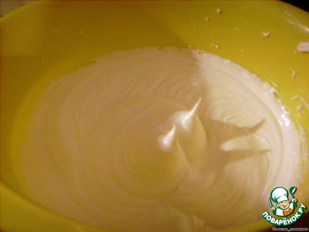 Белки взбиваем с сахаром до крепких пиков