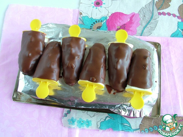 Отправляем в морозилку до подачи на стол. Можно каждое эскимо завернуть в фольгу, чтобы не впитывало посторонние запахи.