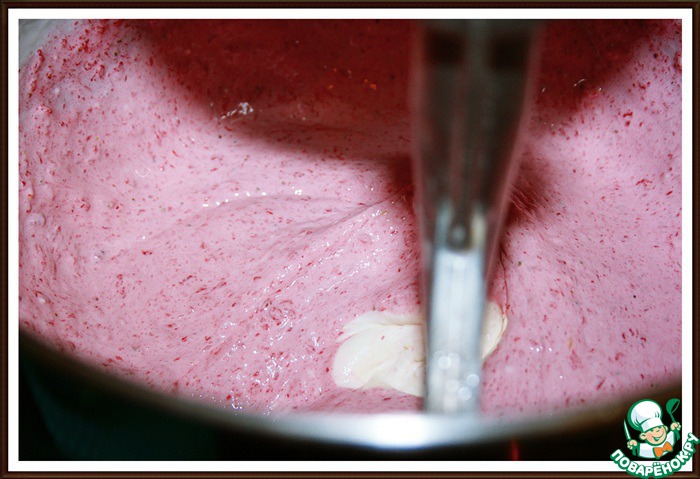7. Добавить клубничное пюре, можете добавить и измельчённое печенье.