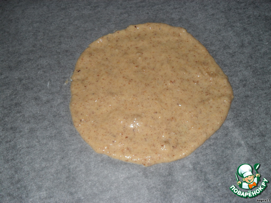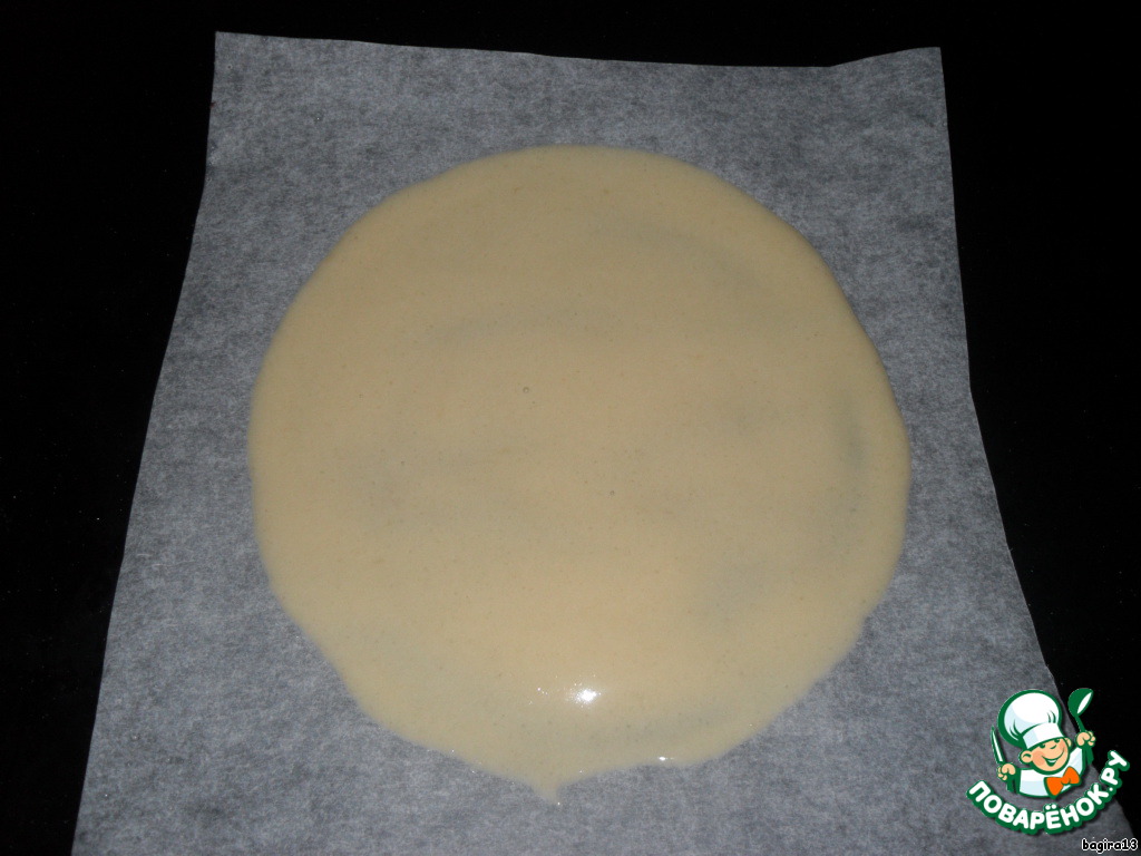 Будем выкладывать 1-2 ст.л. теста на бумагу для выпечки в виде круга диаметром 12-14 см и выпекать в нагретой до 200 градусов духовке около 5 минут, пока края кружочка не будут слегка отставать от пергамента.
