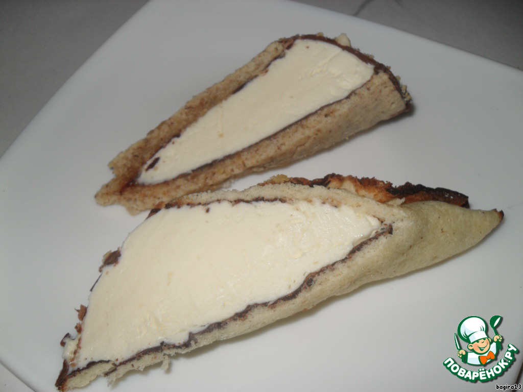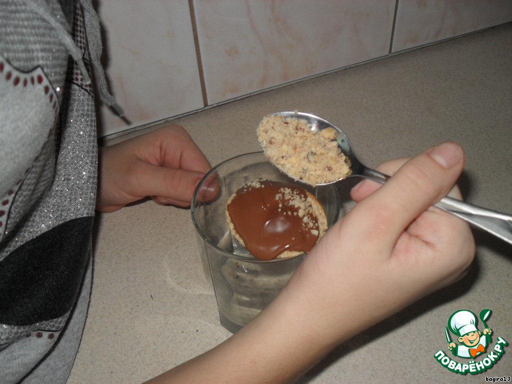 100 г темного или молочного шоколада растопим на водяной бане и с помощью кисточки нанесем его на выпеченные рожки изнутри.