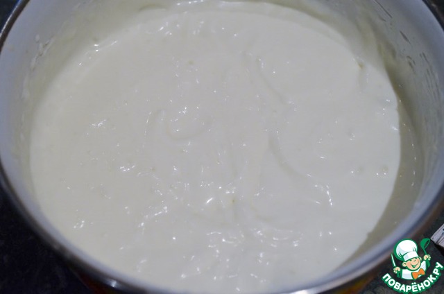 Добавьте сливки и взбейте всё в пышный крем 3-5 минут.