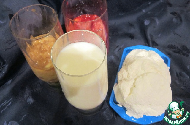 В отдельных мисках перемешать все ингредиенты. Взбить миксером в пену. Отправить в морозилку.