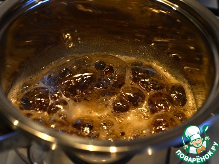 Одновременно варим сахарный сироп: смешиваем в кастрюльке коричневый сахар ( 140 г) и 40 мл воды, ставим на маленький огонь, перемешиваем до полного растворения и варим сироп до 118 град цельсия. (Я обхожусь без термометра - просто проверяю сироп на "шарик" в заранее подготовленной чашке с холодной водой. Если, капая сироп в воду, вы уже можете скатать плотный шарик, но еще не карамель, то сироп готов.)