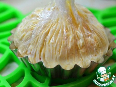 ... или по формочкам. (Я использую для порционной подачи формочки для тарталеток. Выстилаю их пищевой пленкой, заполняю массой. закручиваю пленку и ставлю в морозилку. Когда мороженое хорошо замерзнет, просто достаю эти кулечки из формочки. Пленка снимается без проблем.)
