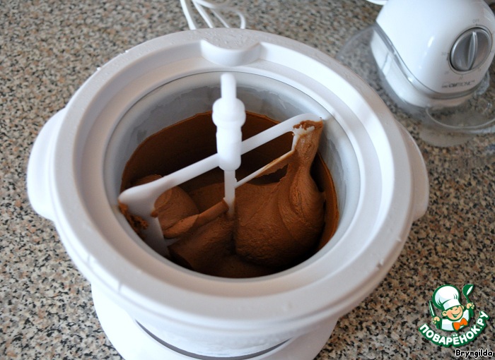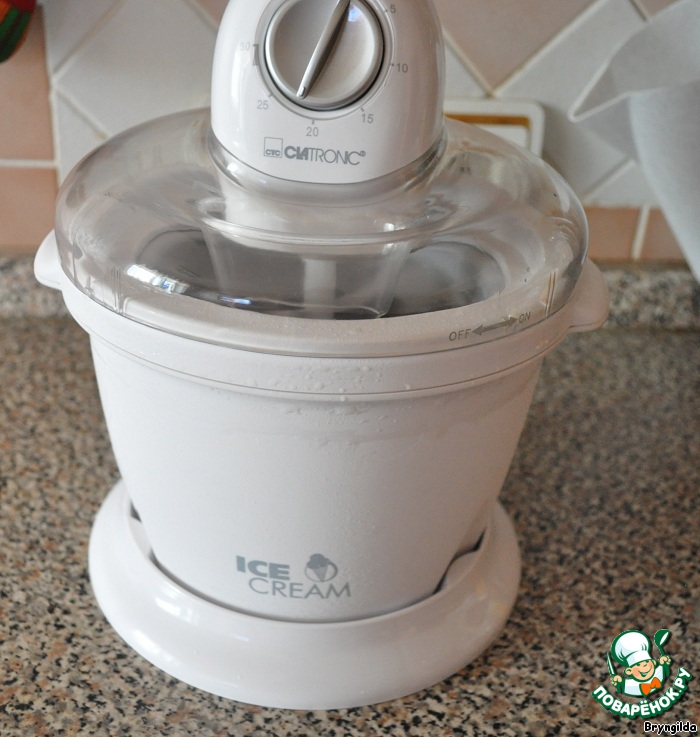 Перекладываю охлажденную смесь в мороженицу и включаю прибор на 25 минут.