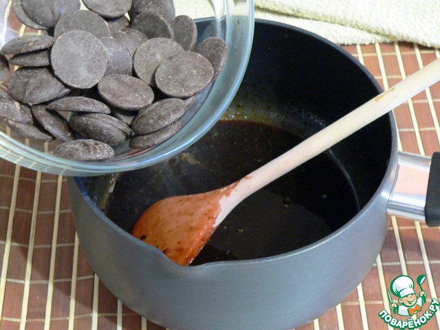 Размешивать деревянной ложкой пока весь шоколад не расплавится. Остудить до комнатной температуры.