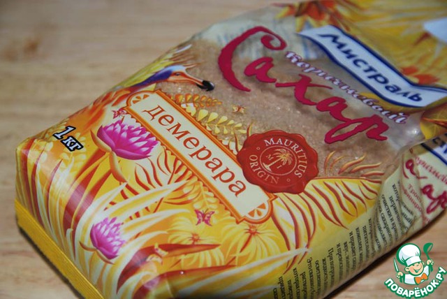 Берём сахар коричневый демерара от "Мистраль". Он наиболее подходит в этом рецепте благодаря своему карамельному вкусу.