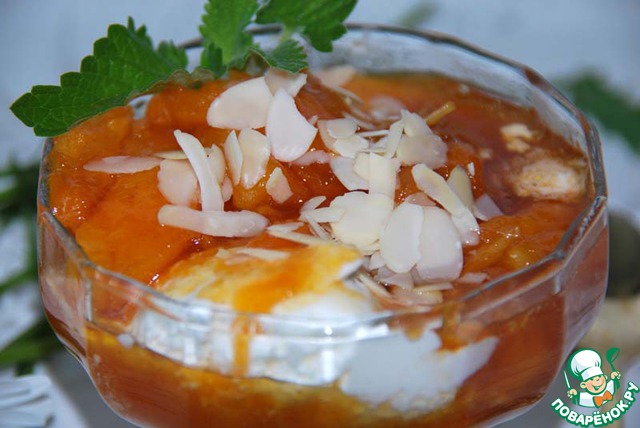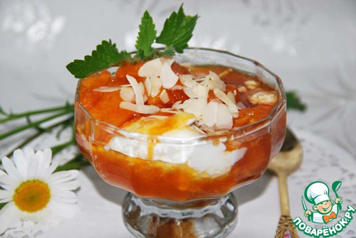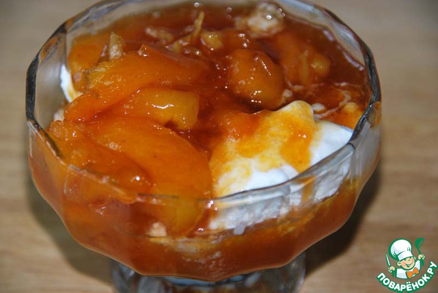У этого десерта очень оригинальный, необычный вкус. Холодное мороженое и горячие, слегка жгучие, за счёт имбиря абрикосы.
