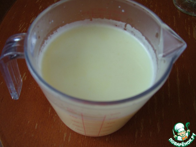 Яично-молочную смесь поставьте на маленький огонь и при непрерывном помешивании варите до загустения. Как только начало загустевать, выключайте огонь и отставляйте смесь. Помешивайте еще одну минутку. Можно это делать на водяной бане, если боитесь получить омлет.