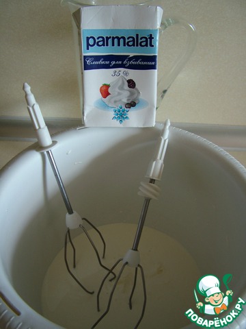 Сливки вылейте в дежу миксера и вместе с венчиками поставьте в морозилку на 10-15 минут.