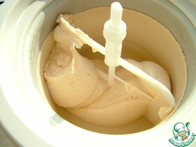 Замораживаем в мороженнице 30 минут, или в металлической форме в морозилке 4 часа (в процессе замораживания несколько раз перемешиваем мороженое).