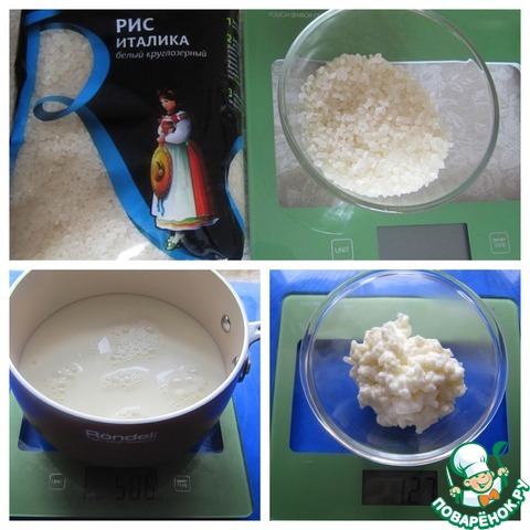 Для основы десерта использую рис белый круглозерный «Италика» от Мистраль. Молоко смешать со сливками, добавить 30 г сахара, нагреть, перед самым закипанием добавить рис, варить на маленьком огне до готовности. Можно довести рис до кипения, варить 3-5 минут, выключить, оставить на 10-15 минут, потом опять довести до кипения, варить 3-5 минут, выключить и так до готовности. Рис должен быть густым, использую для десерта 120-130 г густого охлажденного риса, остальное можно скушать!