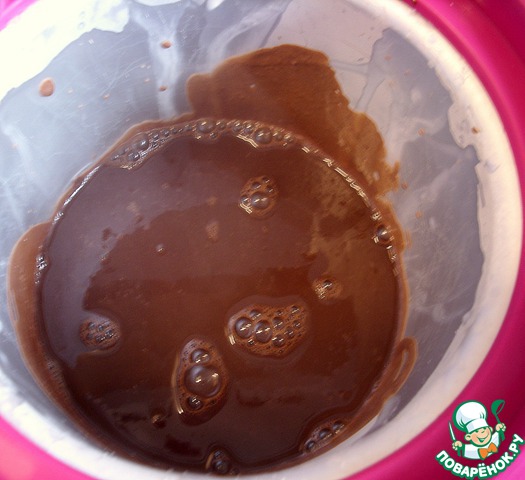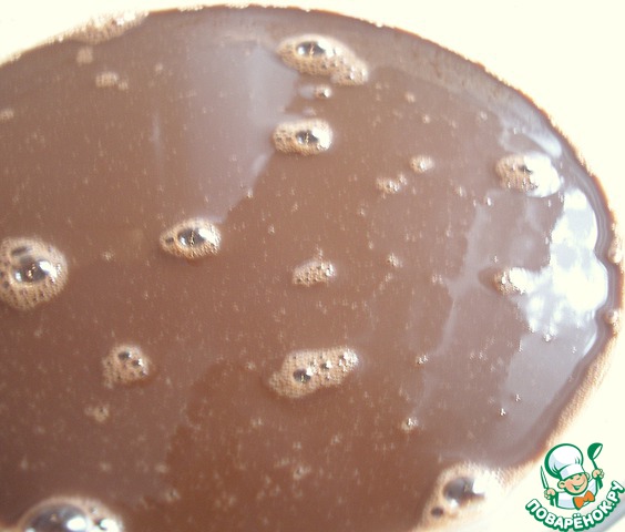Залить шоколад полученым кипящим сахарным сиропом, подождать ровно 1 минуту и перемешать венчиком до однородности. Оставить нашу смесь в покое до полного остывания. Затем переставить в холодильник на 30-60 минут.