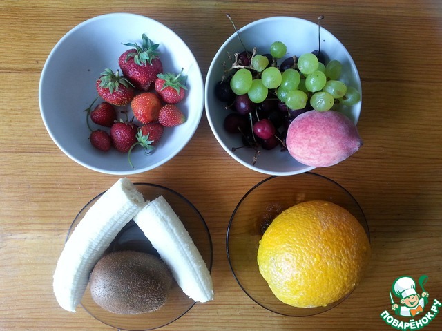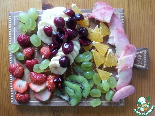В этот раз я взяла клубнику, виноград, нектарин, черешню, киви и банан.