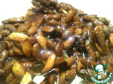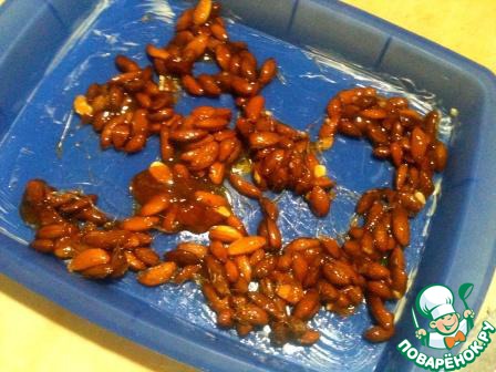Вылить всю карамельно-миндальную массу на смазанный сл. маслом противень.