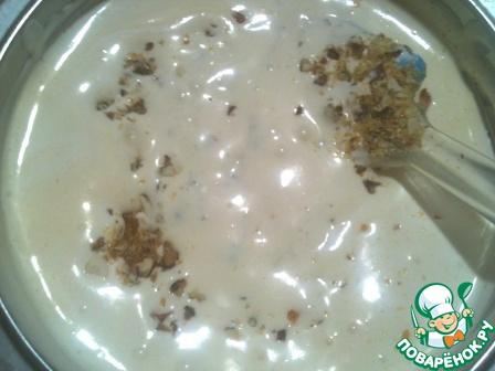 Всыпать карамельный миндаль, оставив немного для посыпки.