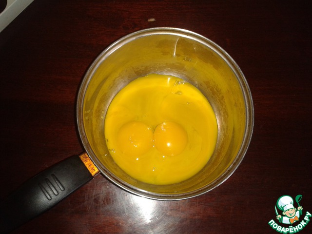 Взять яйца, отделить желтки от белков. Желтки поместить в кастрюльку небольшого размера.