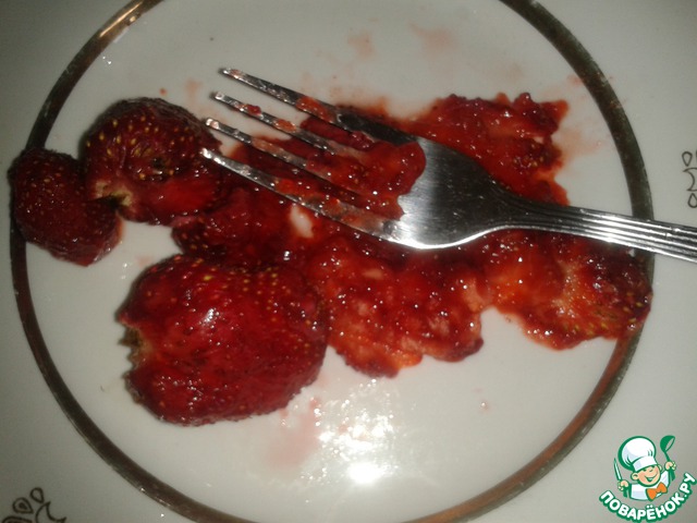 Клубнику перемолоть блендером или растереть вилкой до однородной каши (наверно блендером будет лучше, потому, что если останутся кусочки клубники, они замерзнут и будут выделяться как льдинки).
