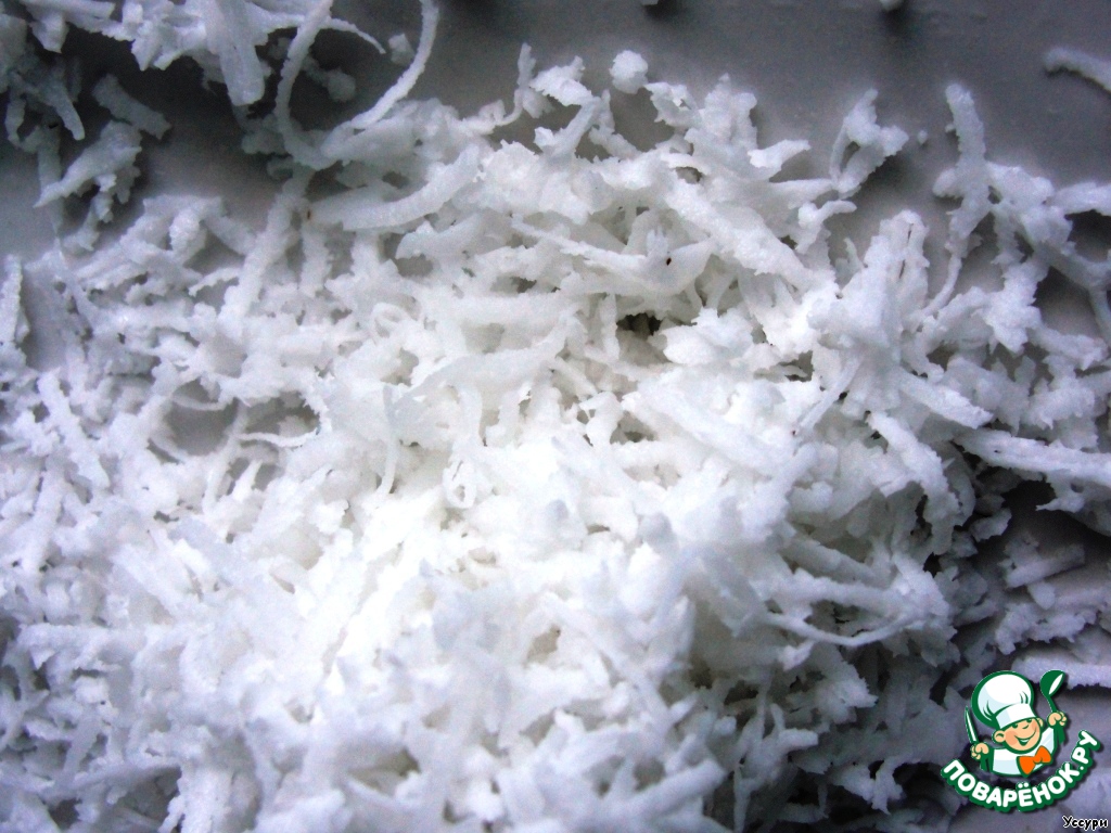 Выковыриваем изнутри мякоть, срезаем темную корочку и трем на мелкой терке.