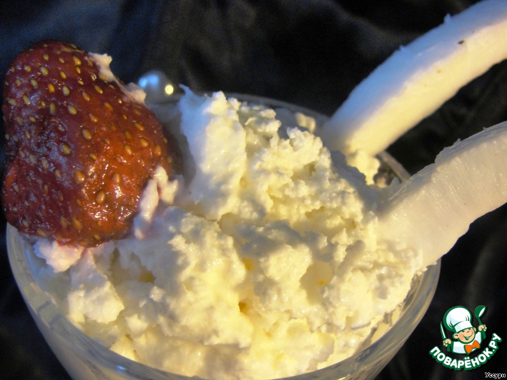 Дальше все предельно просто. 33% сливки взбиваем, 20% употребляем просто так. Можно по вкусу добавить ликер, ароматизатор, кусочки ягод. Сливки и кокосовую стружку смешиваем и замораживаем в морозилке. Взбитые можно сразу в порционной посуде, простые - в плотном п/э пакете и пару раз разминаем, чтобы не образовался ледяной монолит.