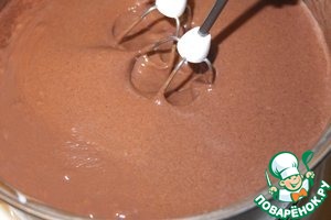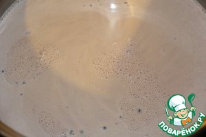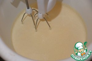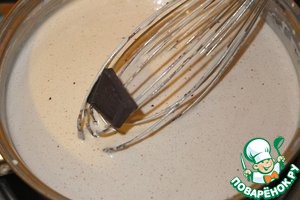 Как только пузырьки появились, вливаем туда яично- сахарную смесь, перемешиваем до однородности.