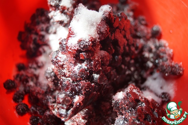 Из замороженной черники делаем сорбет. Ягода может быть любая, какую вам захочется в данный момент и какая есть в наличии. Главное, она должна быть замороженная. Добавляем в ягоду воду (чтобы не убить блендер) и 3 ст. л. сахара. Сахара можно больше или меньше. Добавляйте на свой вкус. Вместо воды можно добавить частично ликёр или коньяк. Ну, это в том случае, если не будут дегустировать дети.