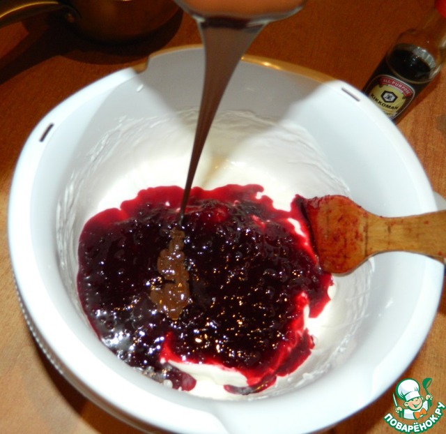 Немного перемешать. Так чтоб остались вот такие разводы и кусочки.