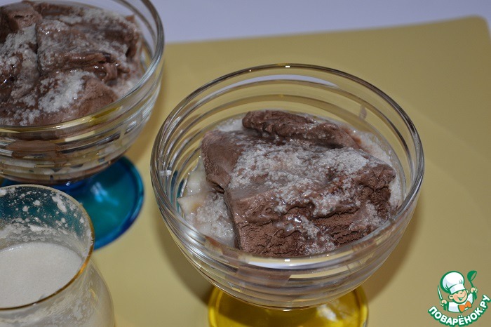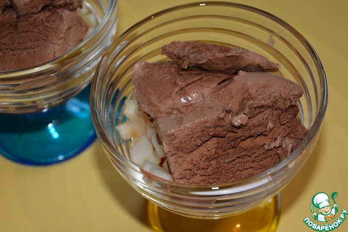 Если Вы любите подтаявшее мороженое, то десерт сразу же можно подавать на стол. При этом его можно еще украсить по вкусу, например посыпать орешками.
