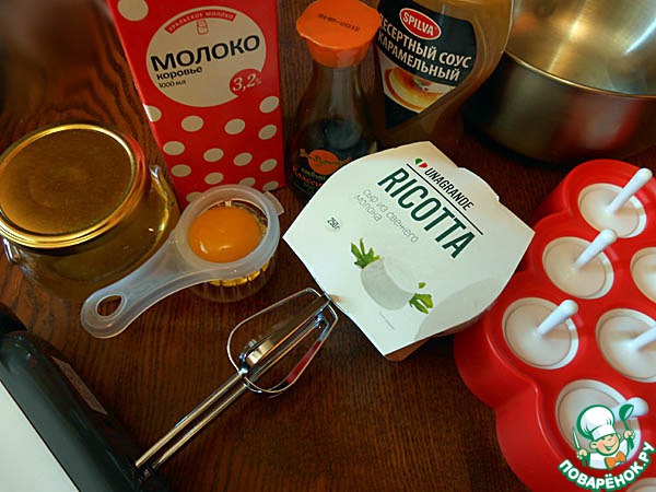 Смешать молоко, рикотту, желток, соевый соус и сироп от варенья.