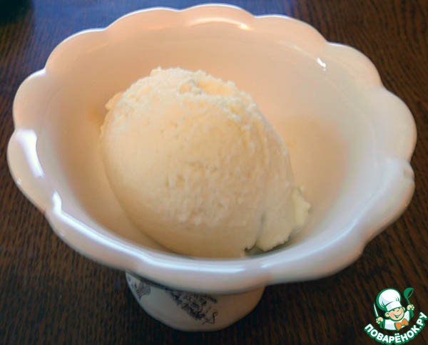 Залить в мороженицу (у меня автоматическая Caple IC3308C). Через полчаса готовки, добавила мелко порезанные кусочки арбуза из варенья. Таким мороженое становится через час: