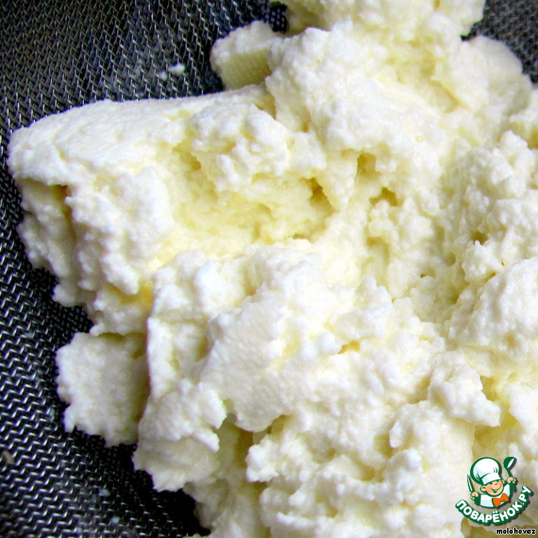 Процеживаю через очень мелкое сито. Если я делаю из молочных продуктов жирностью 1.5%, то на выходе примерно 250 г творога.