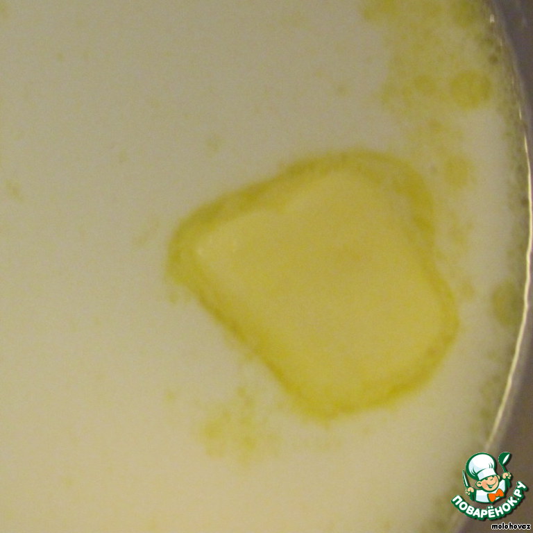 В кастрюлю налить 200 г молока, добавить масло, сахар, соль и ванилин. Помешивая, дать закипеть.