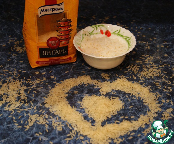Берем 3 ст. л. риса отварного, я его заранее отварила, брала рис Мистраль Янтарь пропаренный, он быстро очень варится