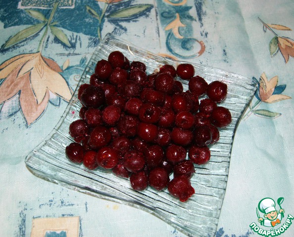 Берем ягоды - можно любые свежие или замороженные. Я взяла вишню своей заморозки; если ягоды замороженные, размораживаем их.