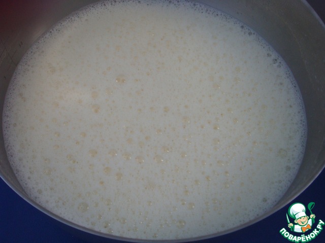 Соединить молоко, сливки и 100 г. сахара и довести до кипения.