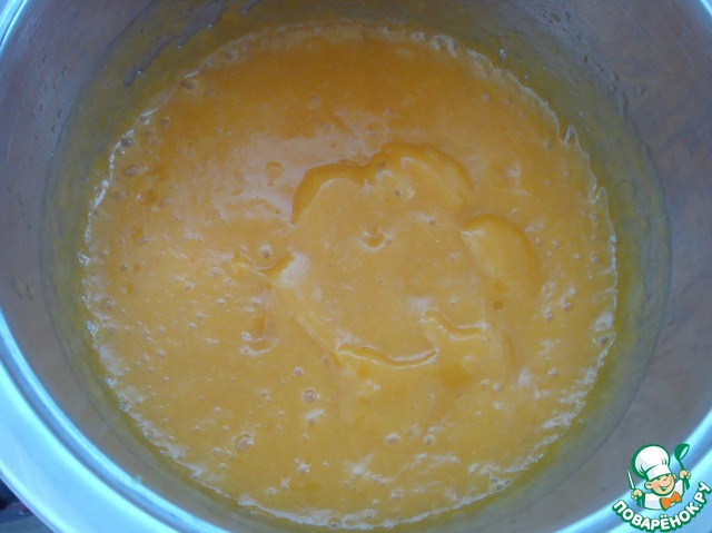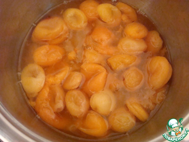 Для абрикосового соуса, оставшуюся курагу с водой, в которой она замачивалась, довести до кипения и тушить под крышкой в течение 15 минут.