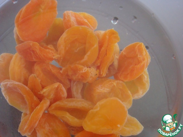 Затем 1/3 часть кураги нарезать на мелкие кубики.