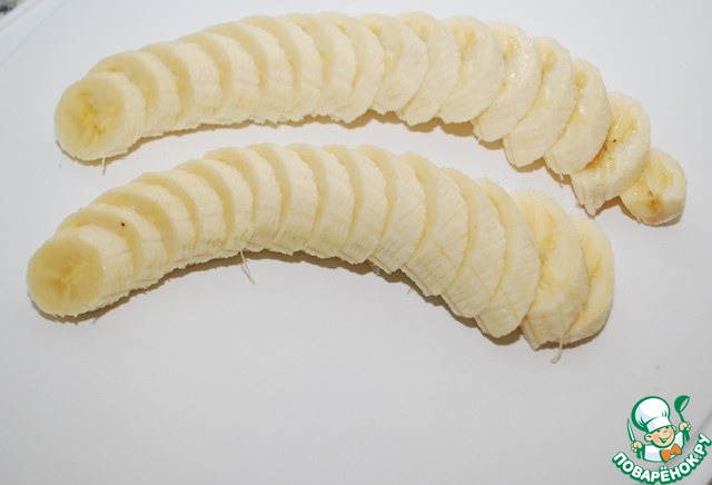 Готовим бананы - один большой или 2 маленьких - чистим и режем тонкими кружками.