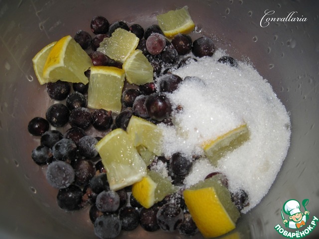 Для ягодного топпинга: пробить блендером ягоды (у меня замороженная из домашних заготовок), кусочки лимона и сахар.