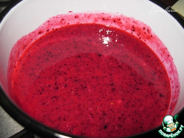 Крахмал развести в 2 ст. л. воды, добавить к ягодной массе и, помешивая, варить до загустения. Снять с огня и слегка остудить.
