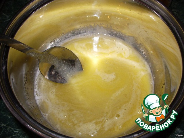 Желатин залить небольшим количеством воды. Дать набухнуть, поставить на разогретую плиту до полного растворения, но не кипятить! Снять с плиты и немного остудить.