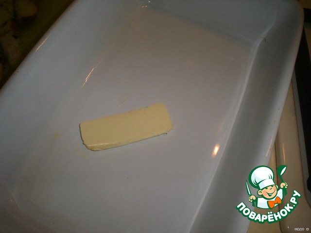 Берем неглубокую форму,примерно на 1,5 литра(радиус 22см).Смажем ее сливочным маслом(слегка)