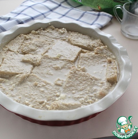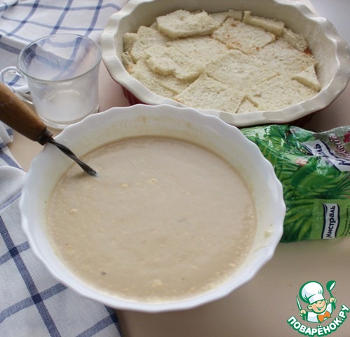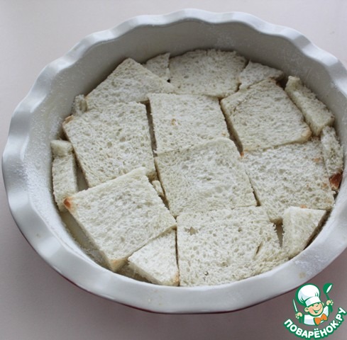 Влейте смесь в форму и оставьте на 5-7 минут, чтобы хлеб пропитался