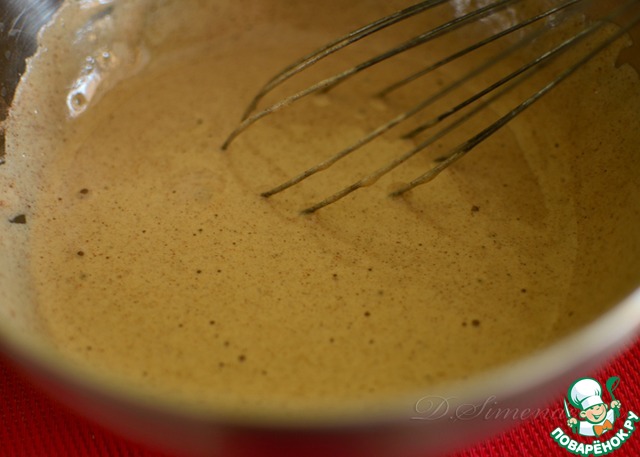Аккуратными движениями снизу-вверх введите в тесто оставшиеся белки и кофе.