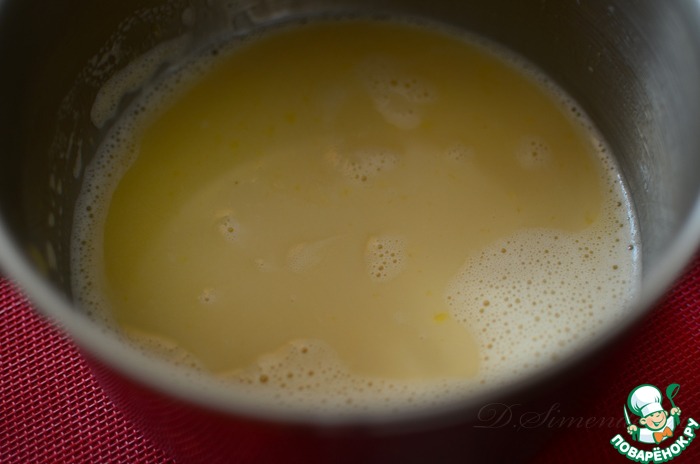 Взбейте желтки с сахаром и молоком, поставьте на маленький огонь и добавьте конфеты и сливочное масло. Сварите крем, конфеты должны полностью расстаять.