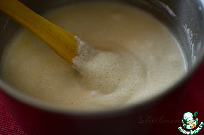 Пока крем остывает, взбейте белки до устойчивых пиков. Аккуратно вмешайте в крем белки, муку и по вкусу ванильный экстракт.